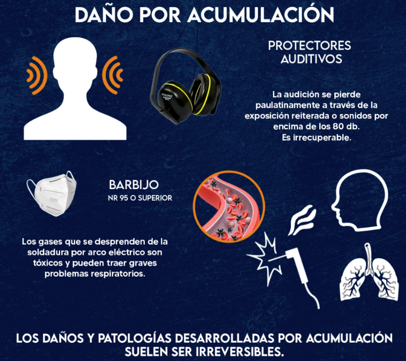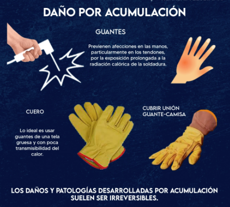 Evitar ropa sintética: Solo algodón o ropa especial para soldadura.